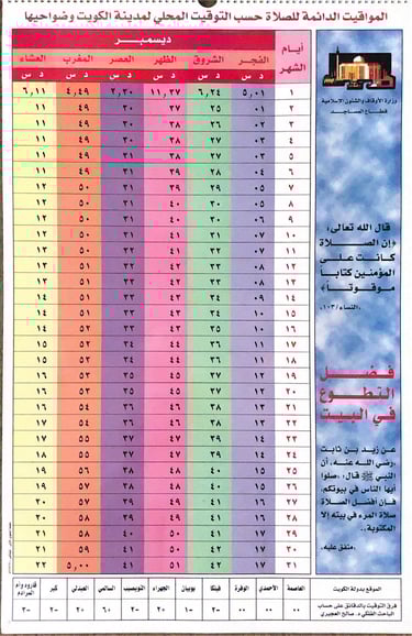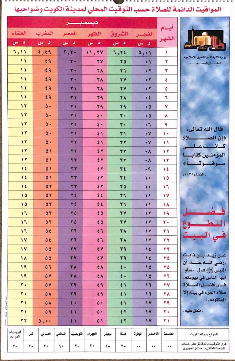 أوقات الصلاة حسب التوقيت المحلي لدولة الكويت.